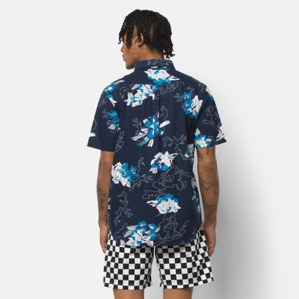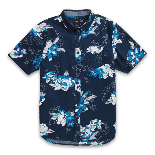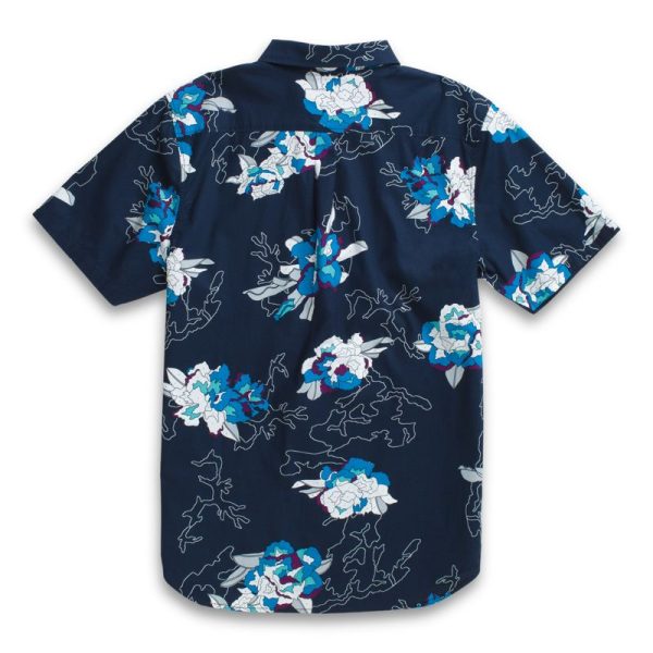 The Deacon Short Sleeve Shirt is a 100% BCI cotton poplin buttondown shirt with an allover floral print and a chest pocket. Model is 6 feet tall and wearing a size Medium.
