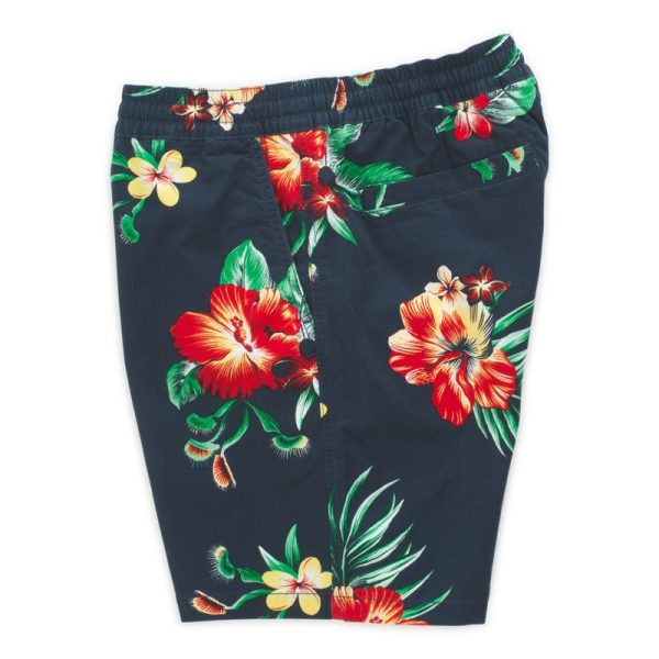The Range Short 18 is a 100% BCI Cotton lightweight twill chino short with a floral print, an elastic waistband and a medium rise, modern fit that sits just below the waist. Model is 6 feet tall and wearing a size Medium.
