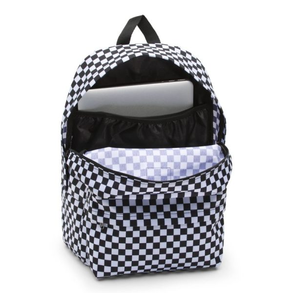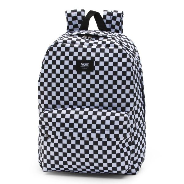 The Old Skool Backpack is a 100% polyester backpack featuring one large main compartment with a laptop sleeve (fits most 15 laptops), a front zip pocket with an organizer for quick access, and straight-cut padded shoulder straps. Measuring 16.5 L x 12.75 W x 4.75 D inches, it has a 22-liter capacity.