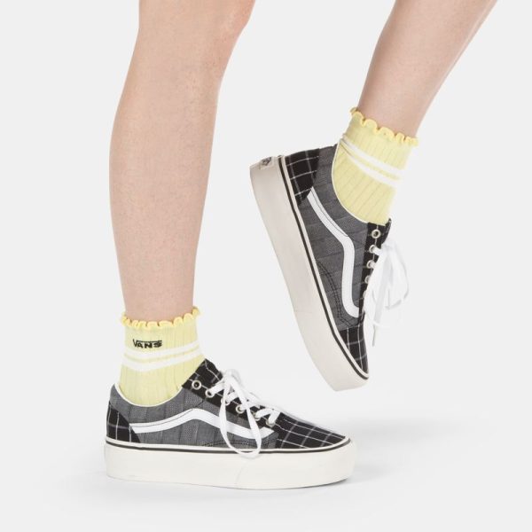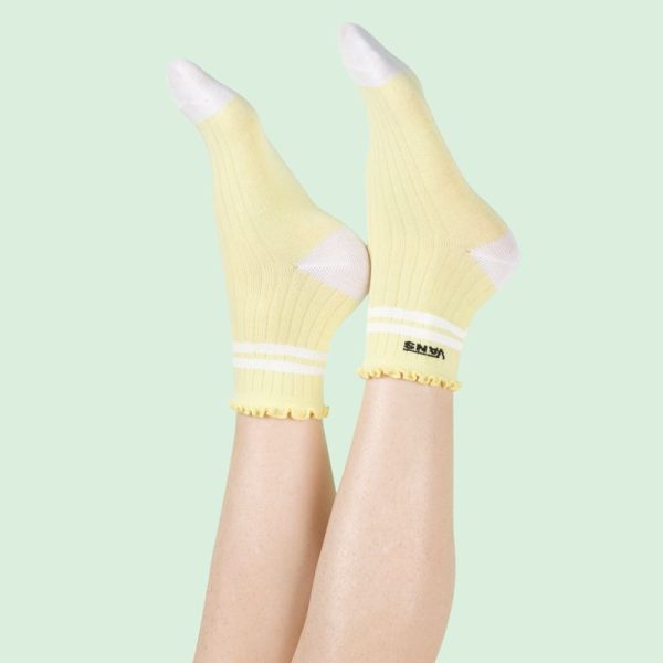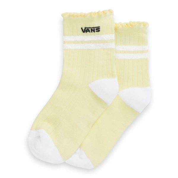 The Ruffed Up Sock is a 62% cotton, 31% polyester, 4% elastane, and 3% nylon ribbed crew sock with ruffle details at the top.