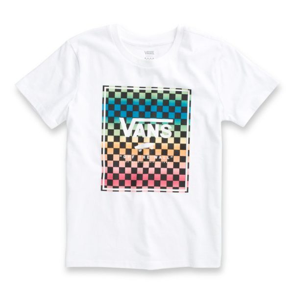 The Vintage Check Box T-Shirt is a heavy 100% cotton jersey crewneck tee with front graphics. Model is 5 feet 9 inches tall and wearing a size Small.
